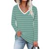 Frühlings-Langarmmode mit V-Ausschnitt und Streifen-T-Shirt-Oberteil für trendiges Damenhemd