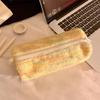 Zylindrisches flauschiges gestricktes Federmäppchen mit großer Kapazität, Schreibwaren-Stiftbox und Kosmetik-Aufbewahrungstasche für Junior- und Senior-Highschool-Mädchen