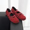 Krazing Pot Nubuck Fashion Spring Size 42 41 Beauty Flat with Women Round Toe Shoes Rivets Ballet Dance Bowtie Decoration Shallow Flats
