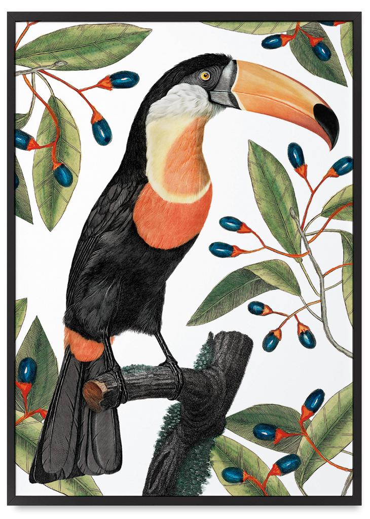 Poster Tukan im Laub in schwarzem Rahmen