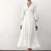 Weißes, einreihiges, elegantes Kleid für Damen, Party-Robe, hohe Taille, langes Satinkleid