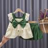 2023 Mädchen Blumen Schleife Top & Shorts Stilvoller Sommeranzug