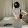 Sexy rückenfreies T-Shirt mit Schnürung und Rundhalsausschnitt für Damen – Kurzarm-Oberteil für Herbst und Sommer
