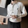 2023 Herren Retro Freizeit Langarmhemd mit Eisenknopf-Dekoration für Frühling und Herbst