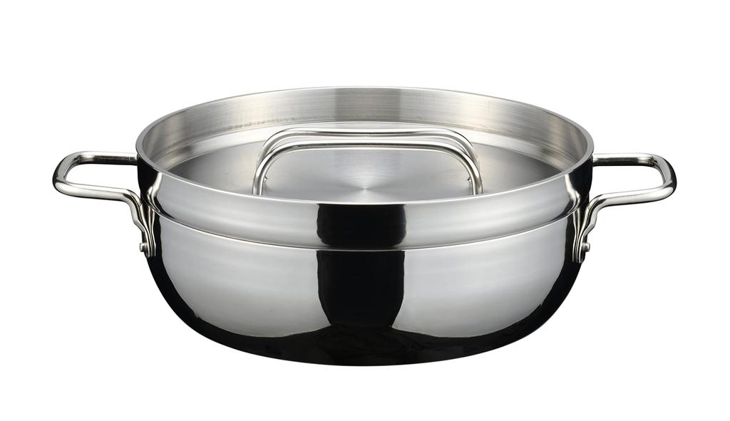 The advantage of triple-layered steel of stainless steel and aluminum is not only lightness! Since aluminum is sandwiched in the center, it has good heat conduction and eliminates the disadvantage of conventional stainless steel pots, which is that only the bottom side that is in contact with the heat source can be heated.