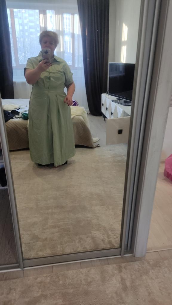 Gutes Kleid, macht sogar schlank, die Farbe ist angenehm. Alles wie auf dem Bild. Ich bin 160 cm groß, es ist mir zu lang. Aber es stört nicht. Ich trage Größe 58
