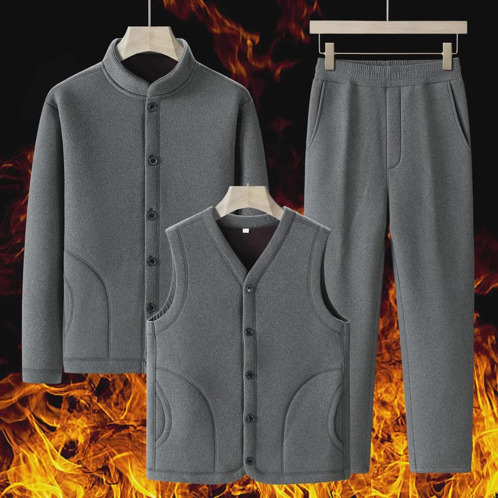 Erleben Sie ultimativen Komfort und Wärme mit diesem vielseitigen dreiteiligen Sportanzug, der speziell für Männer mittleren und höheren Alters entwickelt wurde. Das Set ist aus weichem Samt mit Chemiefasermischung gefertigt und umfasst eine stilvolle Jacke, eine gemütliche Hose und eine kuschelige Innenschicht, alles aus strapazierfähigem Polyestermaterial.. Dieser Sportanzug ist perfekt, um bei kälterem Wetter aktiv zu bleiben und bietet sowohl Funktionalität als auch einen eleganten Look für jeden legeren Anlass.