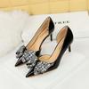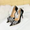 Spitze Stilettos im koreanischen Stil – Lackleder mit Strass-Schleifendesign