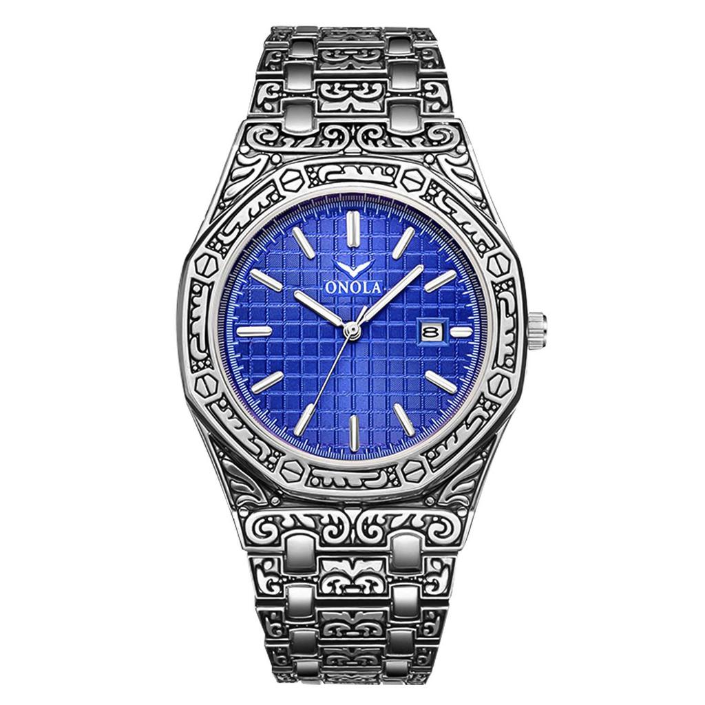 RORIOS Stylish Engraving Process Classic Retro Date Waterproof Stainless Steel Band Quartz Watch Analog Business Watch Popular Commuter Watch for men