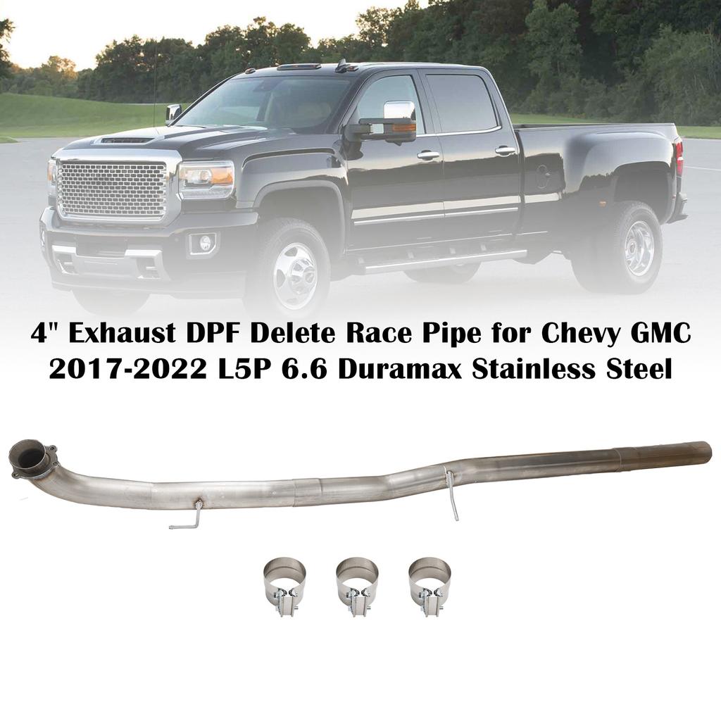 4" Exhaust DPF Delete Race Pipe for Chevy GMC 2017-2022 L5P 6.6 Duramax Stainless Steel