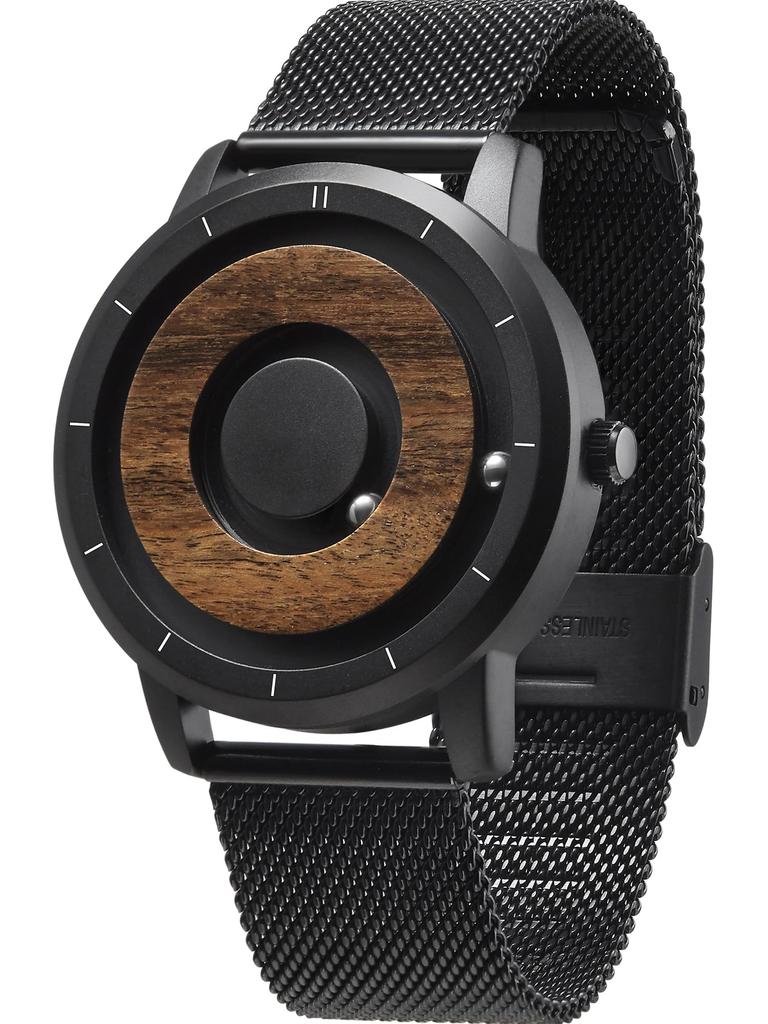 Holz Magnetische Uhr Uhr Mode Sport Quarz Uhr Schwarzes Zifferblatt Schwarzes Edelstahlband Mesh Armband [EUTOUR] Herren