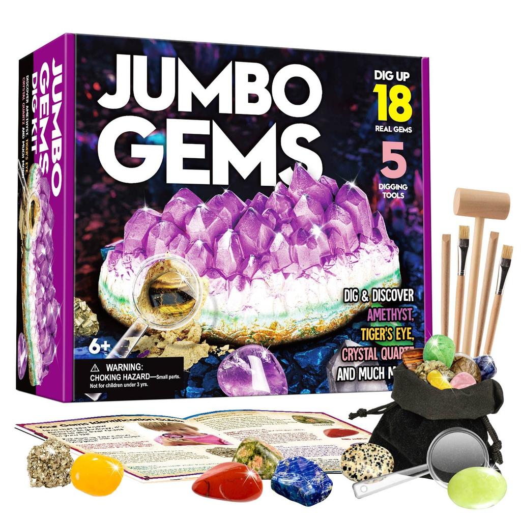 XXTOYS Edelstein Ausgrabungsset Spielzeug Kristallentdeckung Weihnachtsgeschenk Kristallabbau Erzprobe Amethyst 18-teiliges Set Kinder Geologie Geschenk