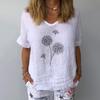 Mode Baumwolle Leinen Lose Beiläufige Bluse Frauen Vintage Kurzarm Gedruckt Hemd Frauen Elegante V Hals Büro Dame Tops