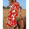 Elegante Damenkleider im Lady-Stil mit V-Ausschnitt und lockerer Taille, lange Sommermode, neue bedruckte Kleider
