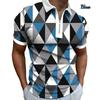 Neues bedrucktes Poloshirt mit Reißverschluss und quadratischem Farbblocking für Herren