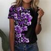 Sommer Rundhals 3D Blumenmuster Bedrucktes Top, Modische Lässige Kurzarm Damen T-Shirts