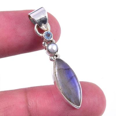 Natürliche Perle, Blauer Topas 925 Sterling Silber Schmuck Anhänger 2,56" T2t38