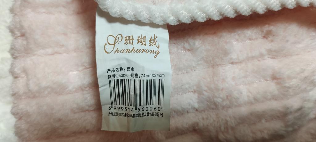 Gute, kleine, weiche, es gibt eine Schlaufe in der Mitte des Handtuchs.