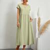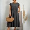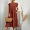 GMXIA Solid Colour Sleeveless Loose Cotton Linen Plug Pocket Women's Dresses