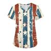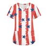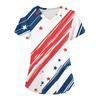 Übergröße Bedrucktes Scrub Arbeitsuniform Oberteil für Damen V-Ausschnitt Independence Day Print Kurzarm Lustige T-Shirts Arbeitskleidung T-Shirt mit Taschen