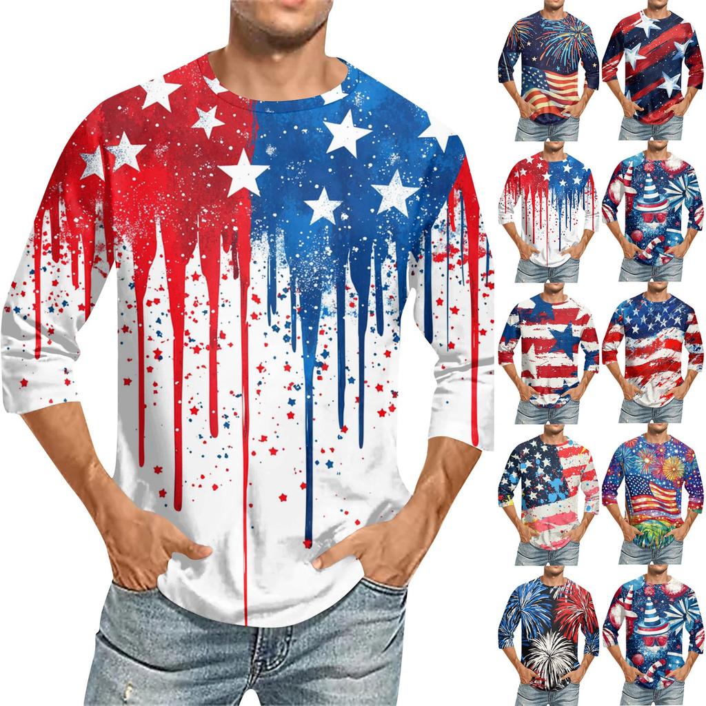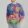 Herrenmode Lässiges T-Shirt mit Unabhängigkeitstag-Print am Hals und sieben Ärmeln
