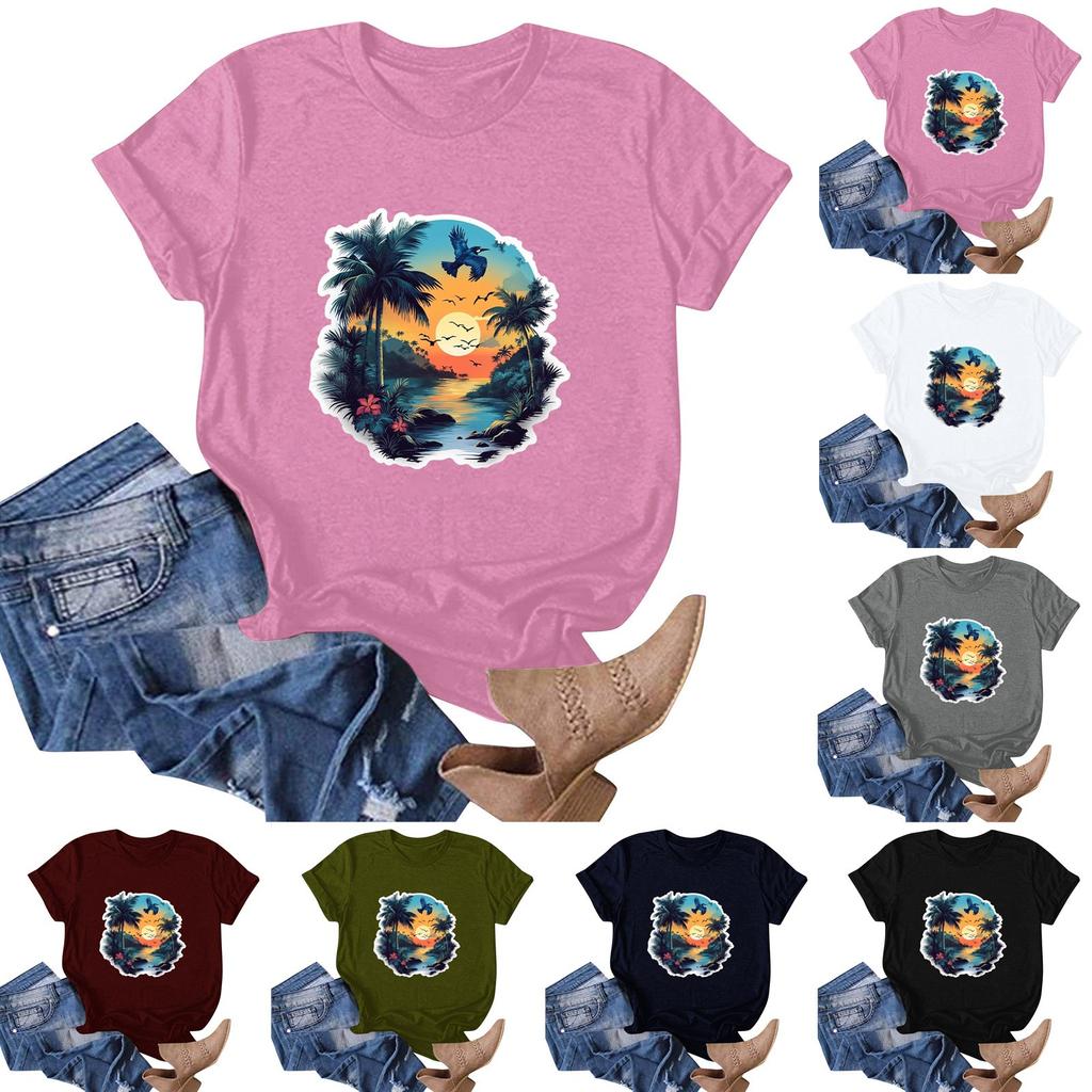 Damenmode Lässiges T-Shirt mit Hawaii-Print, kurzärmelig, kurzärmelig