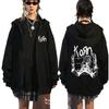 Korn Rock Band WORLD TOUR Reißverschlussjacken Metal Music Herren Hoodies Übergroße Hip Hop Streetwear Reißverschluss Sweatshirts Punk Y2K Tops
