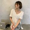 T-Shirt mit Schlitz-V-Ausschnitt und kurzen Ärmeln für Damen Sommer Neues Design Schlüsselbeingefühl Schick Locker Studentenoberteil Damen