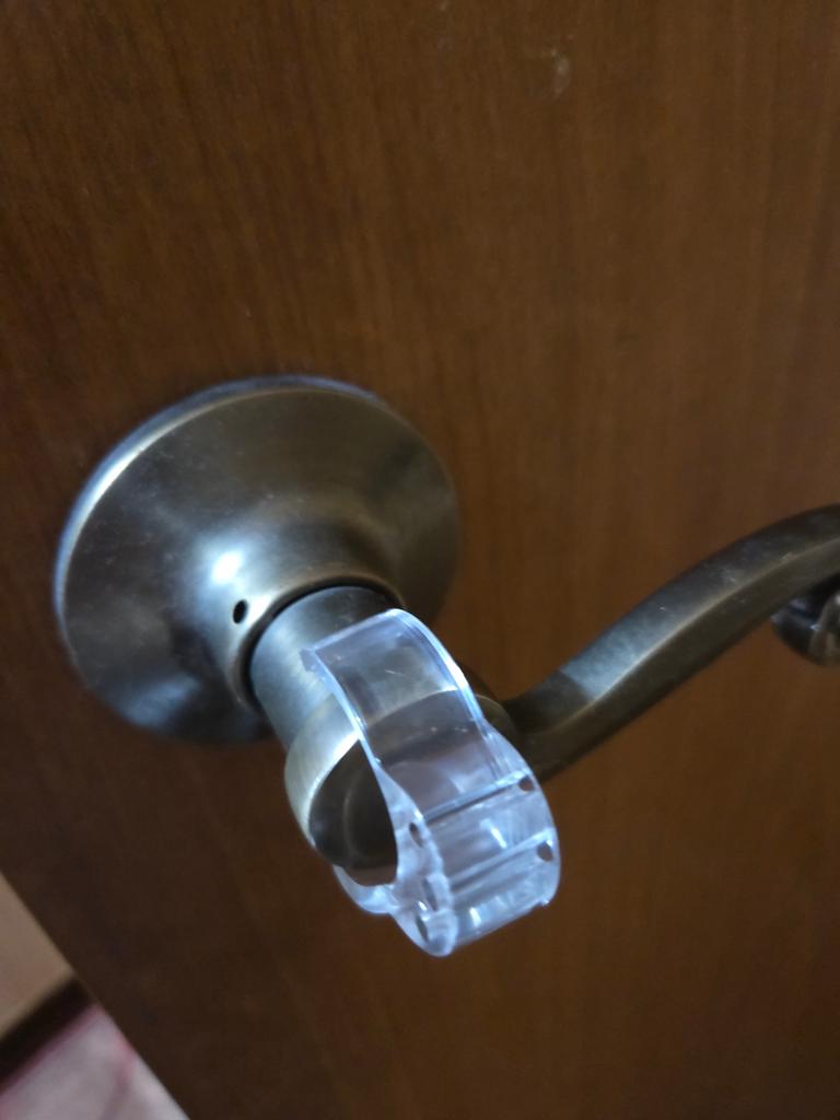 Der Türstopper ist praktisch, er passt genau auf den Türgriff.