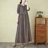 DIMANAF 2025 Frühling Damen Übergröße Urlaub Lockeres Kleid Vintage Basic Plissiertes Freizeit Langes Kleid Streifenkleid Maxi