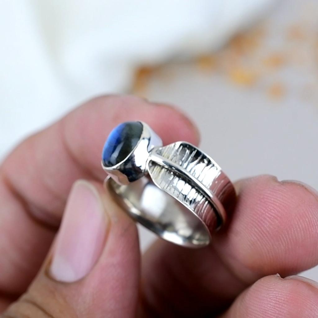 Labradorit Edelstein 925 Sterling Silber Schwarzer Mondstein Handgefertigter Schmuckring für Frauen