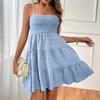 GMXIA Women's Summer One Shoulder Spaghetti Straps Solid Colour Peplum Textured Dresses