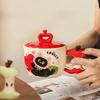 Apfel Katze mit Deckel Niedlich Cartoon Hoher Wert Große Kapazität Keramiktasse Kleines Geschenk Tassen-Set