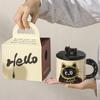 Kleine Geschenke Haushaltsanzug Tasse Mädchen Hoch aussehende Kätzchen Geschenkbox Keramiktasse Cartoon Tasse mit Deckel