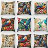 Kissenbezug mit Vintage-Blumenmotiv, Dekoration, blaue Malerei, Blumen und Vögel, Kissenbezug aus Polyester für Sofa, Auto, Zuhause, 45 x 45 cm