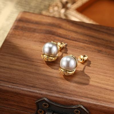 Damen Einfache Mode Ohrstecker, Tannenzapfen Perlenohrringe, Französische Retro Leichte Luxus Ohrringe
