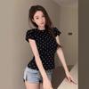 Vintage Polka Dot Rundhals Kurzarm T-Shirt Damen Sommer Kurzes schlankes und dünnes inneres lässiges Studentenoberteil