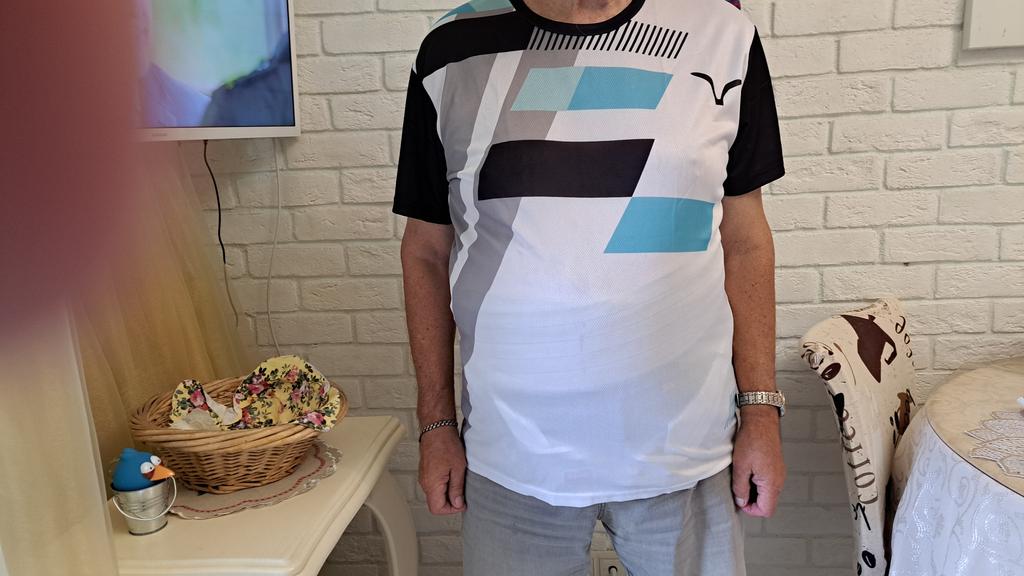 Dünnes Polyester-T-Shirt. Passt für unsere Größe 52-54. Vielen Dank für die Lieferung der Ware an Joom und den Verkäufer.