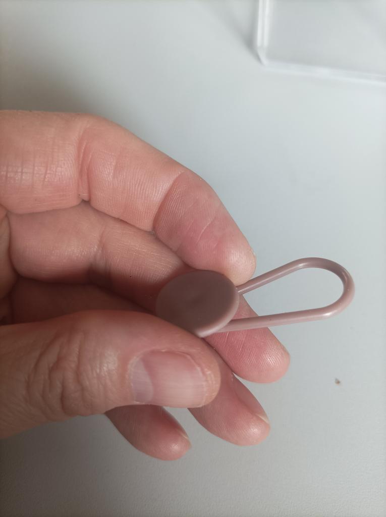 Ein gewöhnlicher Plastiknippel für Hosen.