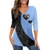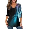 Spring and Summer V-neck 3D Printed Top Fashionable and Casual Long Sleeved Women's T-shirts