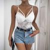 Damen Neuer Sommer Sexy Jumpsuit Weiß Hohle Spitze Schlankmachender Jumpsuit
