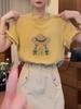 Sommer Freizeit Locker T-Shirt Damen Streetwear Harajuku Vintage Lustiger Cartoon Druck gelb Kurzarm T-Shirts Damen Y2k Oberteile