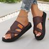 Große Größe, einfarbig, Sommer, neue runde Kopfmode, lässige Hausschuhe mit gekreuzten Ein-Wort-Muster und dicker Sohle