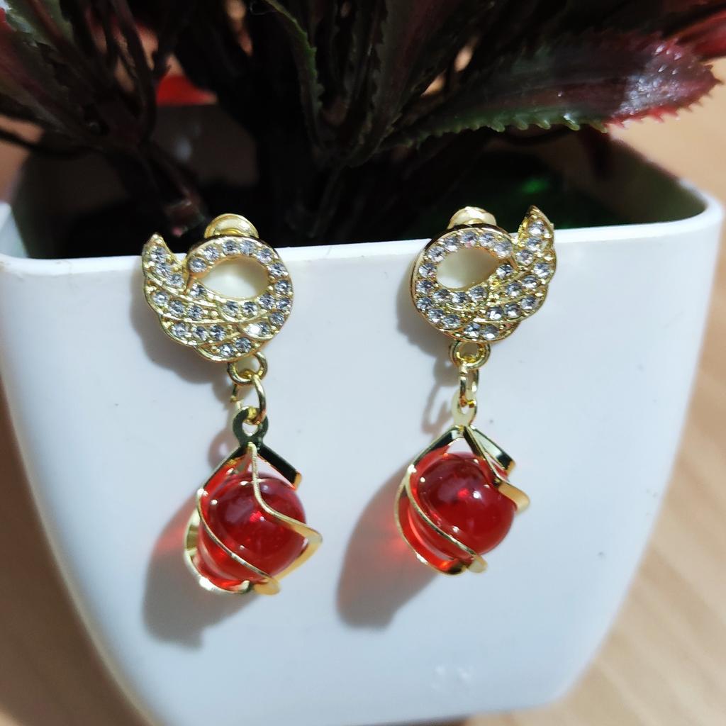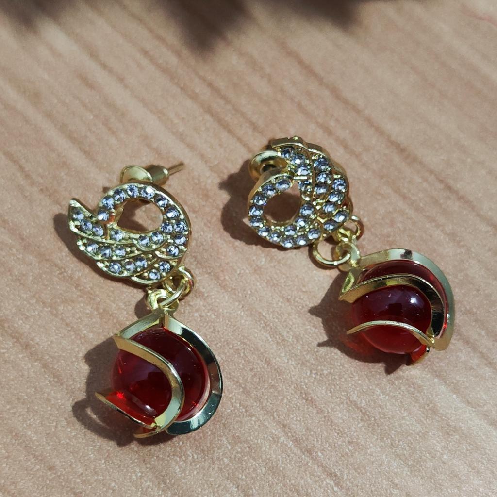 Hochwertige Schwanenohrringe, neues trendiges koreanisches Temperament, Ohrstecker mit rotem Opal, Ohrringe, vielseitige Ohrringe.