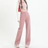 Damenhose Pink Jeans Frühling und Herbst Neue hoch taillierte dünne lockere gerade drapierte schmale Version der weiten Beinhose