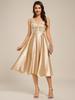 Ever-Pretty A-Linie Tiefer V-Ausschnitt Pailletten Satin Ärmellos Midi-Länge Hochzeitsgastkleid