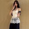 Baumwolle Temperament V-Ausschnitt Mädchen Stil Schöne Spitze Kleine Hosenträger Weibliche Atmosphäre Gefühl Gefaltet Durch Die Mesh Patchwork Furz Vorhang