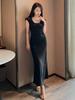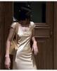 Importiertes Seiden-Triacetat Rundhals-Kleid im schrägen Schnitt mit kurzen Ärmeln, schmaler Taille und elegantem Design