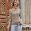 Vintage Mode Elegant Lässig Herbst Rundhals Khaki Einfarbig Damen Strickpullover Langarm Locker