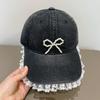 Chic Lace & Bow Denim Baseball Cap for Women - Lightweight, Adjustable Fit, Sun Protection - Perfect for All Seasons, Butterfly Knot, Duckbill Cap